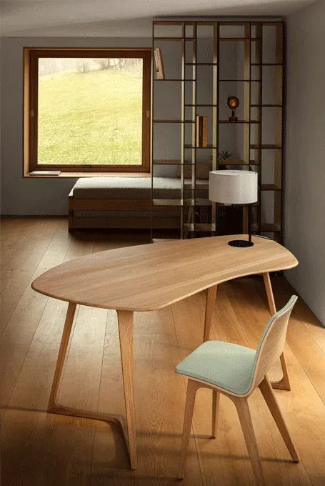 Twist Office has a lightweight frame with a biomorphic design that combines strength and fluid form. Refined edge detailing adds a sophisticated touch to the tabletop.