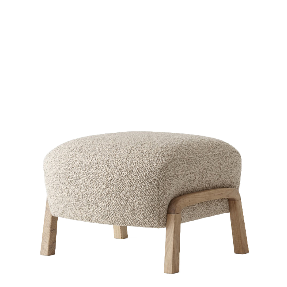 Based on the signature aesthetics of the sculptural Wulff lounge chair, the Wulff pouf is handcrafted with solid oak or walnut legs and is available in the same stylish upholstery as its namesake. Whether you use it as a footrest for the Wulff chair or as a quaint lounge stool on its own – the ultimate goal is relaxation.